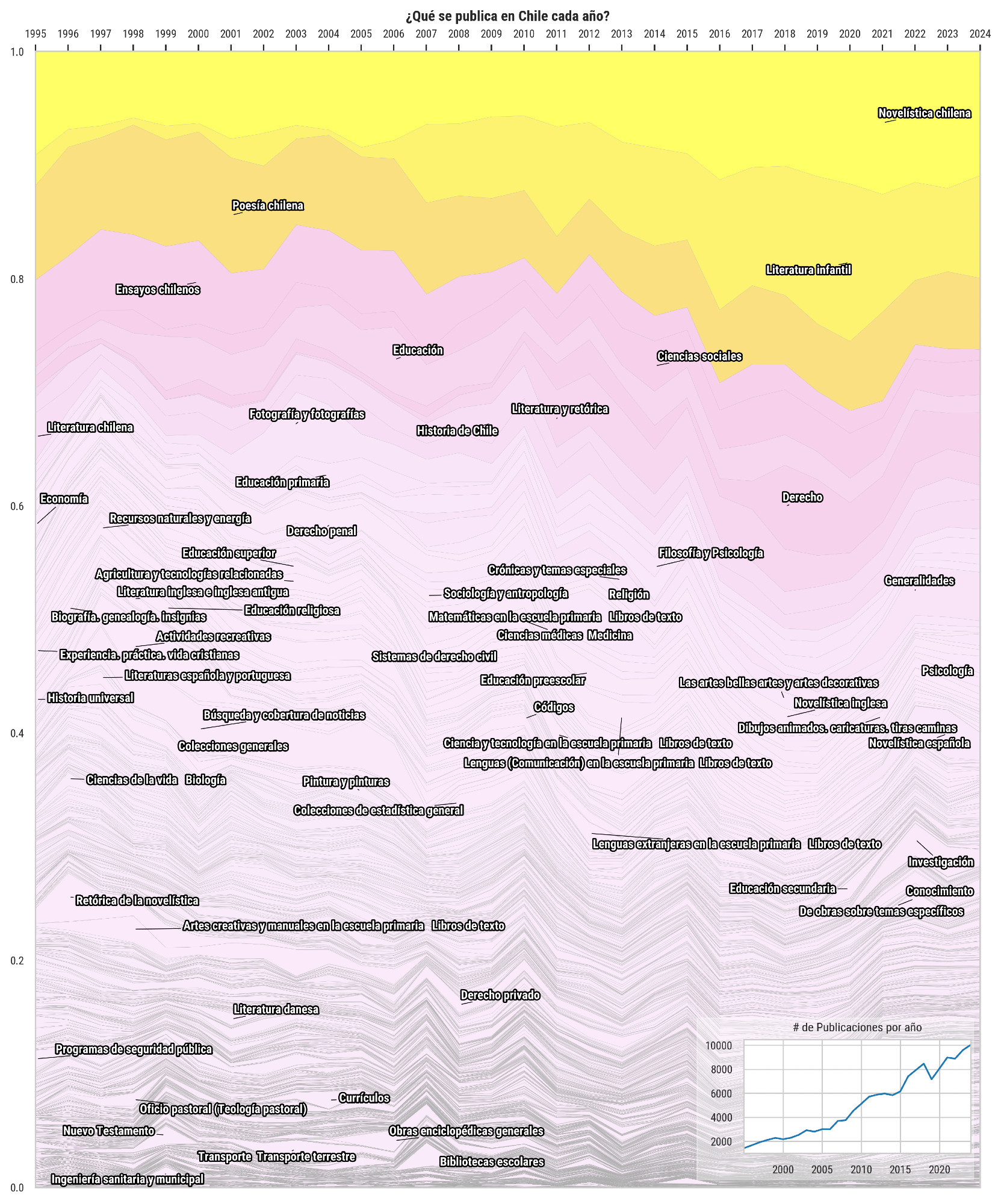 Quise hacer un experimento y este año creé un programa (asistido por IA) que descargó la totalidad de registros ISBN en Chile hasta la semana pasada. Analicé los datos y pude observar cómo ha crecido el mercado editorial, y también cómo han cambiado las categorías de publicación. Este análisis tuvo impacto directo en las decisiones de la editorial que llevamos con mi esposa. Por ejemplo, ante el volumen de novelas y antologías que se publican, mucho mayor al que imaginábamos, decidimos reducir nuestro gasto en publicidad. No es algo que podamos costear: como editorial independiente casi no tenemos presupuesto, y lo poco que gastábamos no era suficiente. La solución es gastar más para imponerse, o bien buscar alternativas. Estamos en esto último porque no podemos competir contra ese volumen de publicación. Un volumen que era invisible antes de recolectar los datos y analizarlos. No solo invisible para la editorial sino para el ecosistema, a pesar de que esos datos están disponibles en el sitio de la Cámara Chilena del Libro y son visibles para cualquier persona que utilice el formulario de búsqueda.