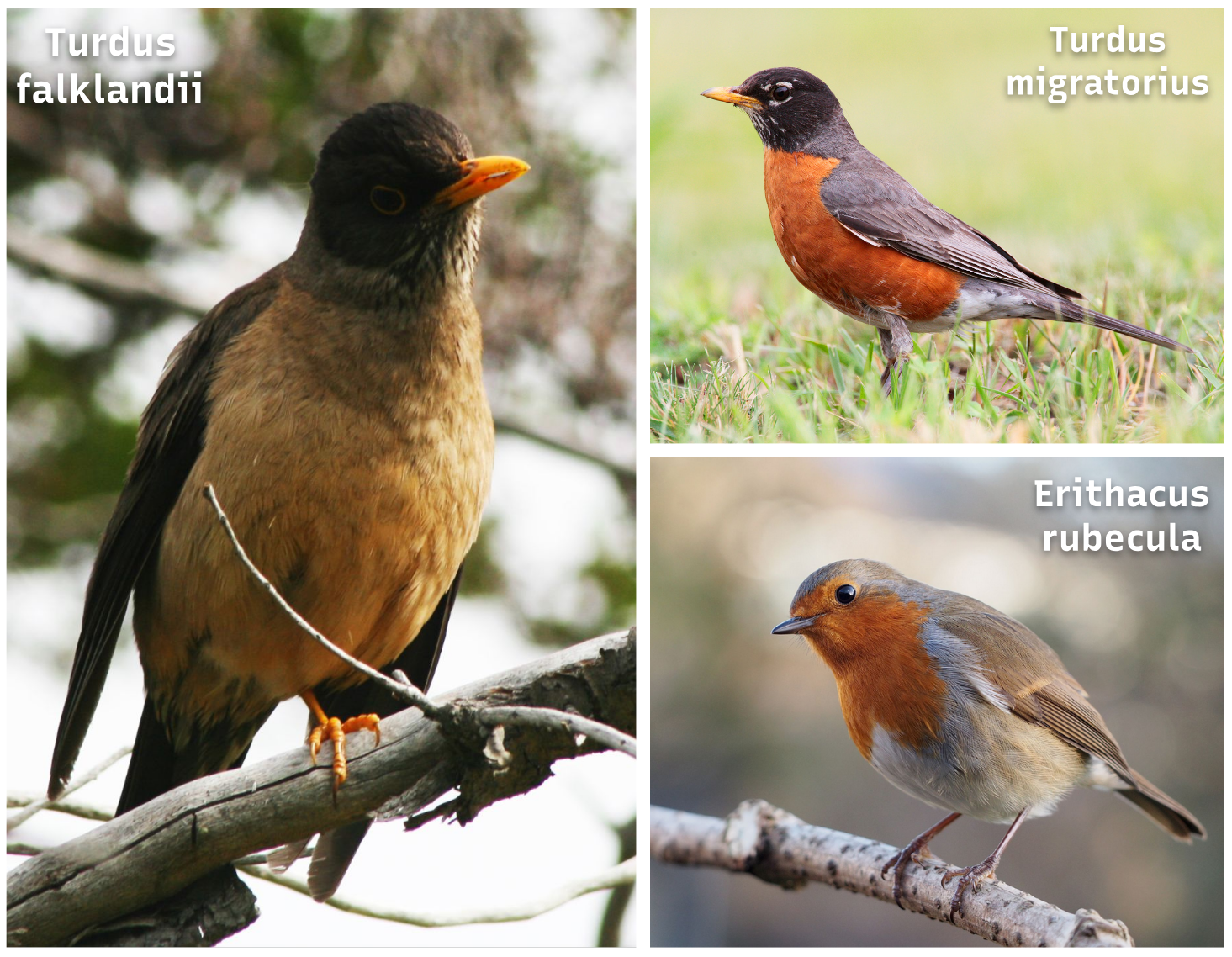 Estos sesgos están presentes en múltiples maneras de procesar información. No solo sucede con el texto o el lenguaje. Por ejemplo, en una versión tipo taller de esta conversación, muestro cómo le pido a un modelo de generación que imágenes que ilustre un pajarito llamado turdus falcklandii, conocido como «zorzal patagónico» en Chile. Es similar a la especie turdus infuscatus, aquí llamada «Primavera Negra». Al pedir el zorzal, el modelo me generaba otros pajaritos porque simplemente no conocía especies chilenas, y entendía que turdus se refiere a turdus migratorius, el robin americano, un tipo de zorzal en Estados Unidos, que comparte el nombre robin con otra ave diferente en Europa. Ambos robin tienen en común el plumaje naranja del pecho. El modelo no era consistente en hacer un robin americano o europeo. Este error que parece pequeño y lúdico se expande a todo tipo de conocimiento regional o latinoamericano. Y nadie puede decir que es falta de contenido, porque las personas que observan y registran aves son muchísimas. Así como en nuestras universidades hay archivos patrimoniales e incluso laboratorios de humanidades digitales que disponibilizan conocimiento. Otro ejemplo es el proyecto de un amigo que transcribe los chistes del Festival de Viña del Mar y los analiza, y resulta que una porción importante de los chistes, sobre todo aquellos que usan chilenismos, no son bien transcritos.