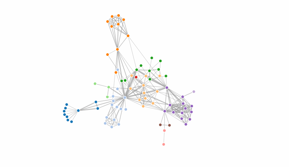 La respuesta está en un método que aprendí cuando hacía mi doctorado. Trabajaba con la biblioteca d3.js, que se utiliza (incluso hoy) para implementar visualizaciones de datos. Una visualización que ya implementa esta biblioteca es el gráfico de redes: