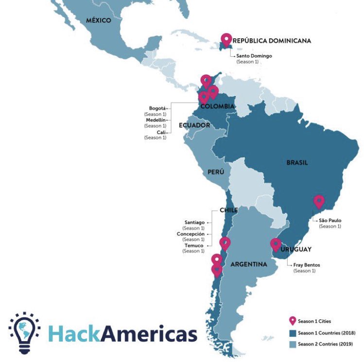 Una hackathon que ya se ha hecho dos veces y que al parecer llegó para quedarse es la Youth for Public Transport Hackathon, que se enfoca en problemas de movilidad y transporte público. Este año se llama HackAmericas y todavía tienes tiempo para inscribirte. ¿Qué esperas? Como ves en la imagen, es una hackathon de nivel internacional. Su tema ser el transporte, algo que nos concierne a todes. Nota que Santiago no es Chile: también se llevará a cabo en Temuco y Concepción.